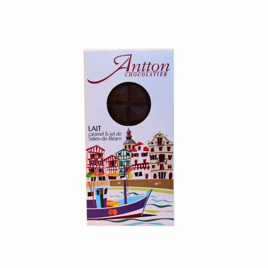 Préparée dans les ateliers d’Antton à proximité de Bayonne, cette création artisanale utilise un chocolat lait élaboré à partir d’un mélange de fèves sélectionnées, travaillé dans la pure tradition basque. Le sel de Salies-de-Béarn, reconnu pour sa pureté naturelle, apporte une touche finale qui sublime les arômes et rappelle fièrement les terroirs du Sud-Ouest.